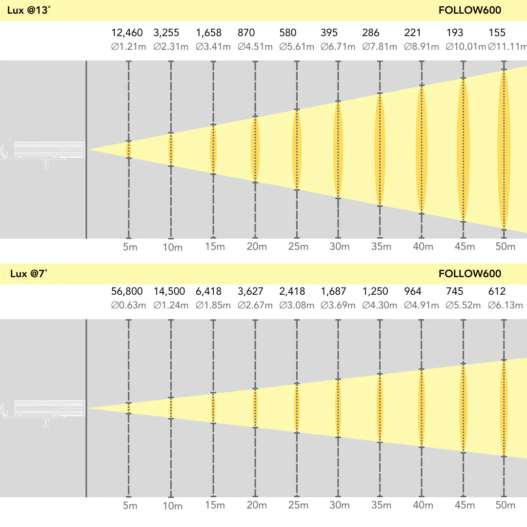 - Output: 56,800 lux @ 5m @ 7°; 12,460 lux @5m @ 13°