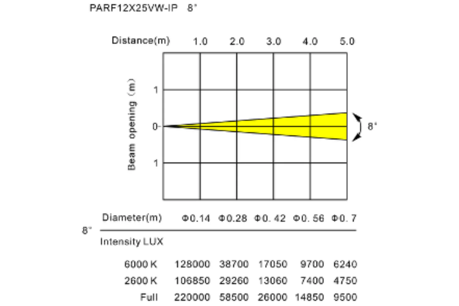 - Beam Angle: 8° (Electronic Frost Included)